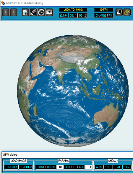 Gravity Alpha es otro software gratuito de simulación de la gravedad para Windows. Usando este software, usted puede tener la simulación de la fuerza gravitacional que trabaja entre dos cuerpos. Estos cuerpos pueden ser el sol y la tierra, la tierra y la luna, la tierra y la ISS, dos objetos cualesquiera con masas diferentes, etc. Viene con algunos archivos TXT precargados. Estos archivos contienen información sobre dos cuerpos, como el nombre del objeto, posición en tres dimensiones, velocidad (Vx, Vy y Vz), masa, densidad, etc. Puede elegir cualquiera de estos ficheros para iniciar la simulación, o editar/crear un nuevo fichero TXT para simular el efecto de la gravitación sobre los objetos creados por usted. Incluso puede añadir BMP imágenes a los objetos creados. Ahora, un clic en el botón verde Start inicia el proceso de simulación.