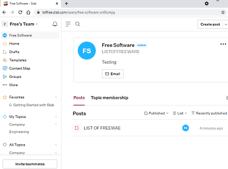 Slab es otro buen sitio web alternativo a Notion online. Este sitio web permite a los usuarios crear, organizar y descubrir conocimientos sobre sus organizaciones sin tener que hacer mucho esfuerzo. Además, es bastante similar a Notion en los aspectos de Plantillas y Grupos . Ahora, echa un vistazo a las características principales de este sitio web.